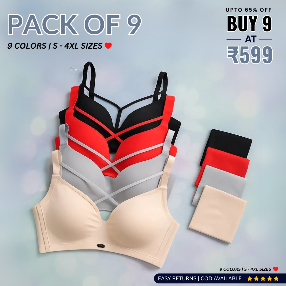 Feel confident every day with our soft & stylish 9-pack lingerie sets. Limited stock – shop now and elevate your comfort! 💖👙